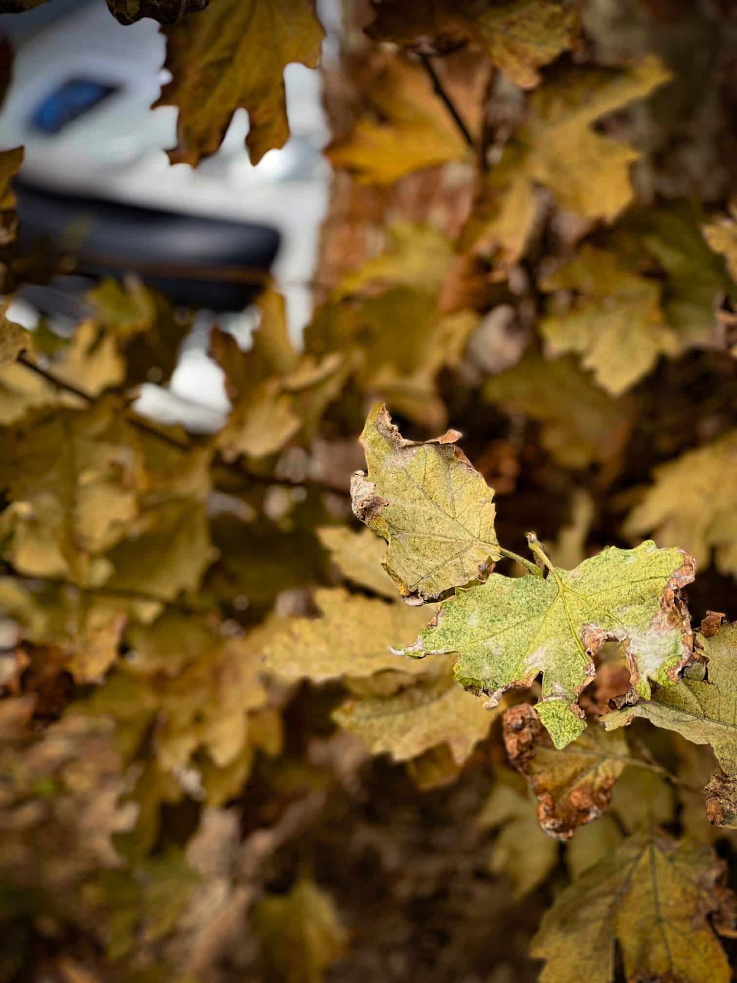 Cette place est bordée de platanes. Arbres élancés comme des colonnes au tronc doux et écaillé, les platanes sont des arbres d’usage par leurs larges feuilles (du grec Platos qui signifie large) qui garantissent une ombre dense et fraîche pour protéger les jeux des enfants, les bavardages, les jeux de boules… Ici, ce sont les voitures qui se protègent du soleil.