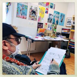 En 2021, 7 résidences d’une semaine chacune ont été organisées. Les artistes sont hébergés au 55 du bâtiment les Églantines au cœur du quartier. Ils ont travaillé en grande partie avec l’équipe de travailleurs sociaux du CAJ et ont découvert les activités du centre social : accueil jeune, atelier sportif, atelier danse, Maison de l’enfance, épicerie solidaire… Ils ont réalisé un grand nombre de dessins et de prises de sons. Le travail s’est orienté sur la question de comment est-on d’ici ? Comment est-on arrivé là ?