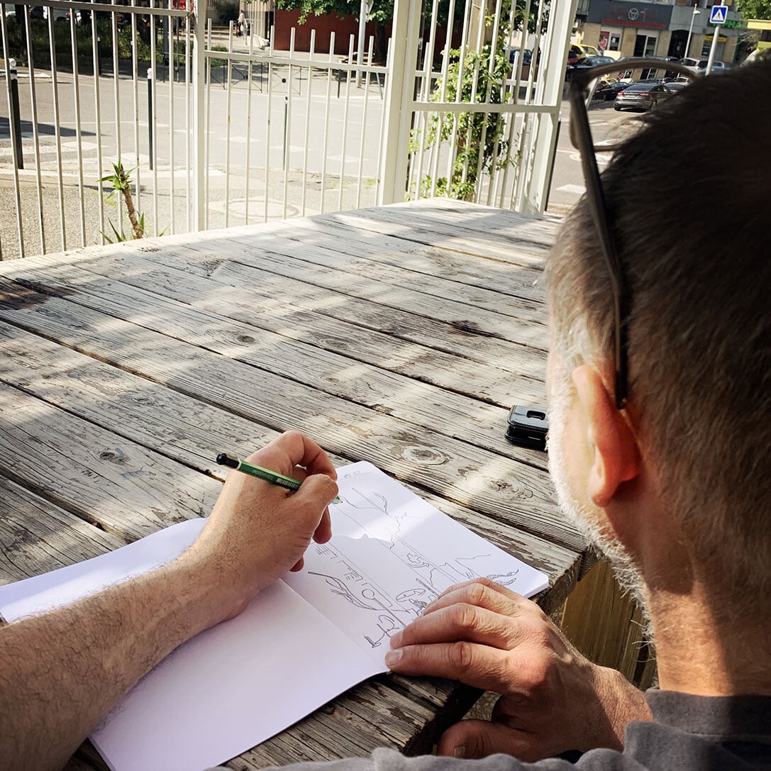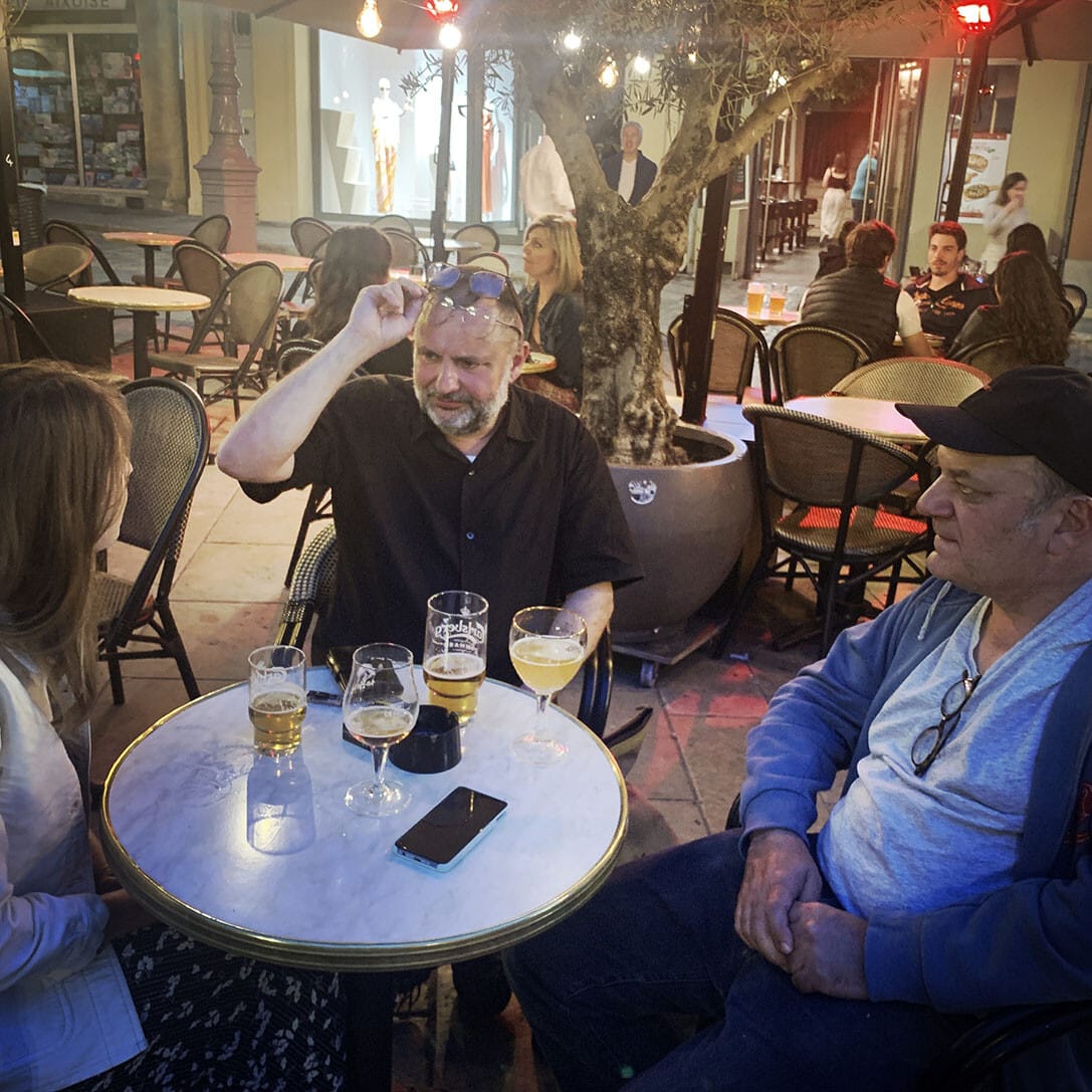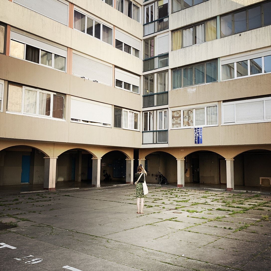 Au Snack and Food, rue Emile Henriot, le patron nous accueille avec le sourire. Il nous explique qu’il vient de reprendre le fonds de commerce, qu’il est ouvert depuis 15 jours et qu’il ne peut pas encore servir à manger. Il s’excuse. Il souhaite refaire la cuisine. Les travaux commencent la semaine prochaine. Il nous installe une table dehors. Une dizaine de mouettes braillent sur les toits. Les martinets tournent dans le ciel. Sur la terrasse en fin d’après-midi, quelques personnes se prélassent devant un café. Une parabole accrochée sur un balcon semble d’un autre temps. Du linge pendouille aux fenêtres. Deux pigeons dodelinent sur le trottoir, à la recherche de quelques miettes abandonnées. L’un d’eux trouve un quignon de pain sur le bord de la route, aussitôt, l’autre le lui dispute, et puis rapidement ils sont une quinzaine à s’exciter sur le bout de pain sec. Le premier s’envole et lâche l’affaire, dégoûté. L’ambiance sur la petite place est paisible. Les gens sont tranquilles. Le temps semble au ralenti, presque immobile. Nous partons à la découverte du quartier.