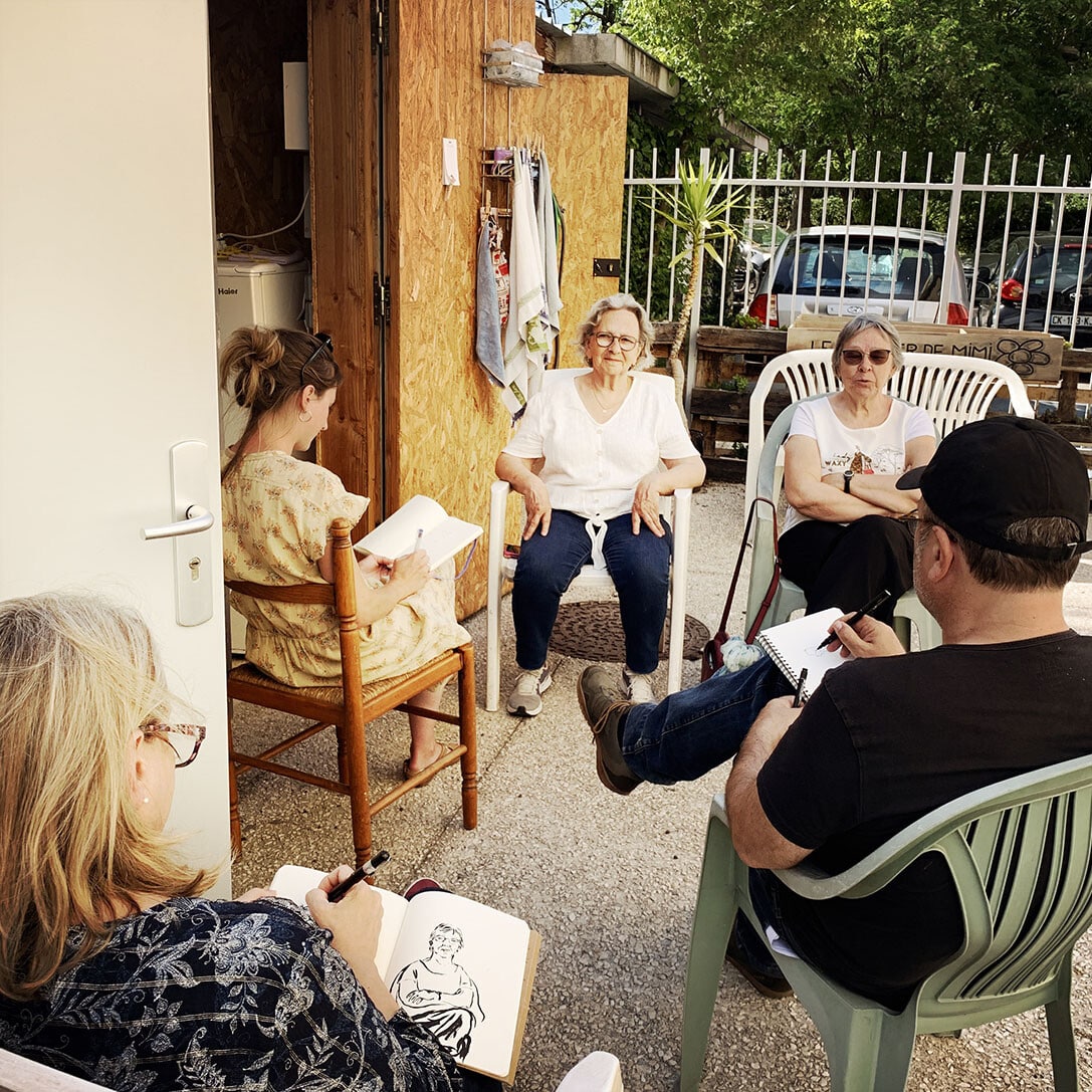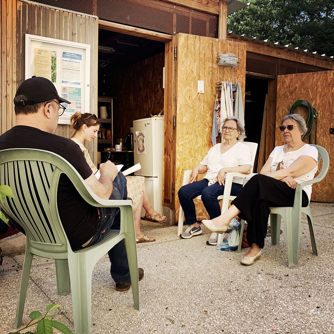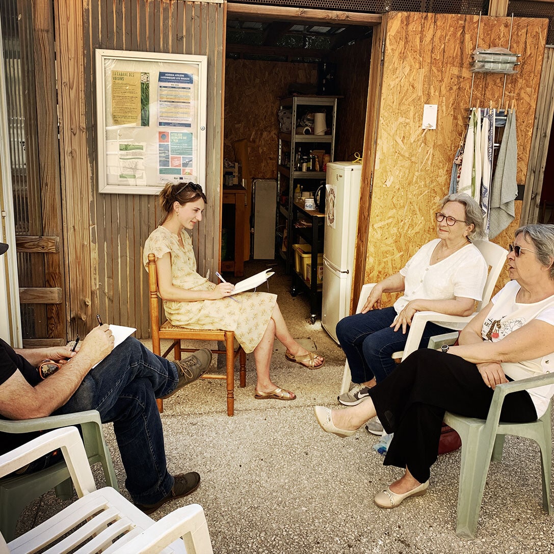 Sur la place Romée de Villeneuve le marché bat son plein. Non loin de là, les artistes de la Compagnie Ouïe/Dire arpentent les rues du quartier à l’affût des moindres événements, à l’écoute des paroles des habitants et en quête des petits récits qui fabriquent depuis 60 ans l’histoire d’Encagnane.