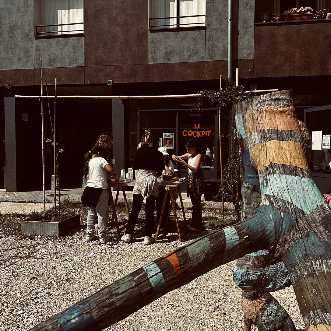 Situé au rez-de-chaussée du bâtiment D de la Cité HLM Jacqueline Auriol, le Cockpit est un lieu culturel de proximité et un atelier pour les artistes en résidence dans le cadre du programme Cultures Proches. Expositions, concerts, projections, repas, apéro, barbecue y sont organisés régulièrement. Ce lieu est devenu un espace de vie sociale et de rencontre pour les personnes du quartier et d’ailleurs.