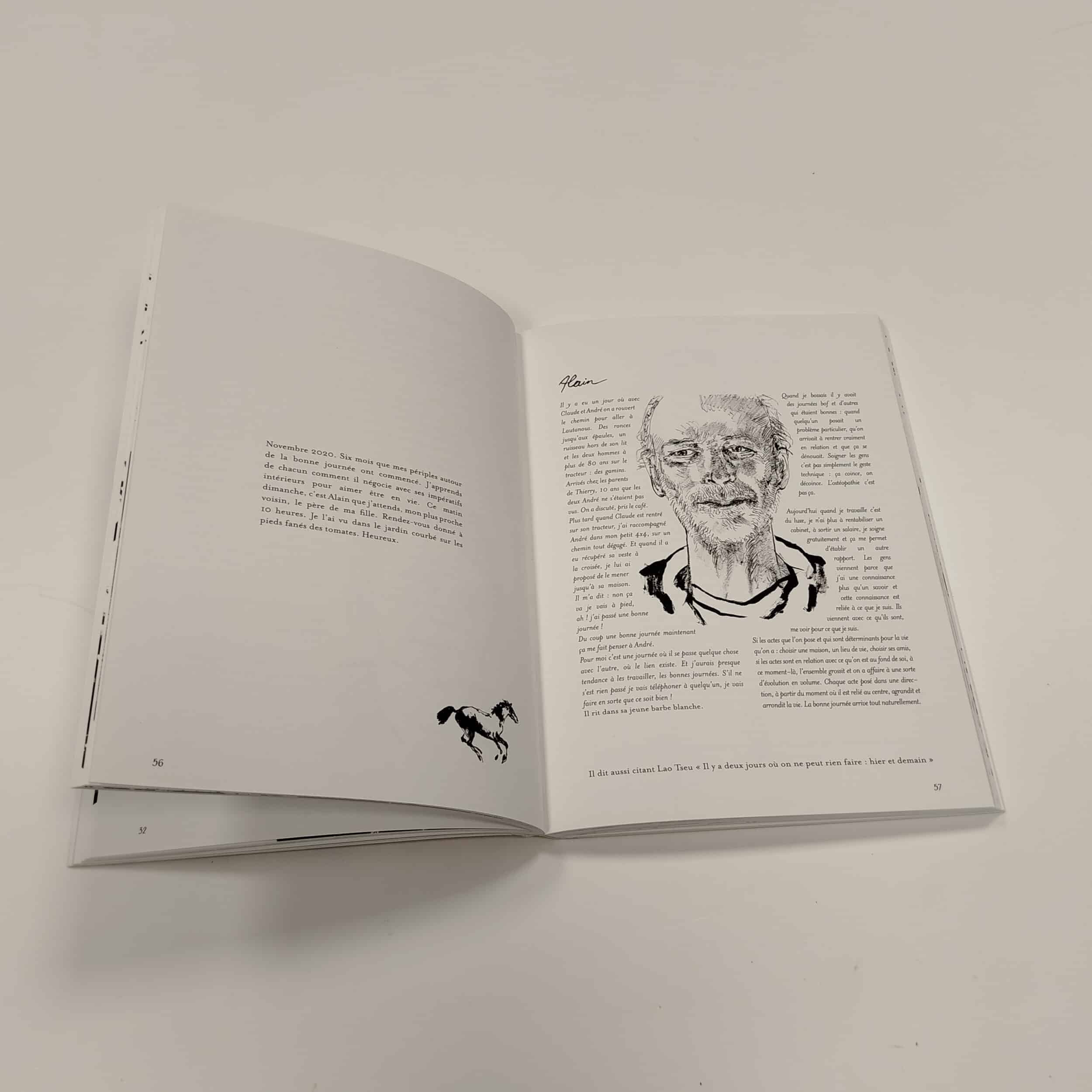 Chaque jour, elle fait le chemin à pied vers chacun. Elle les interroge sur ce qu’est une bonne journée. Elle prend des photos de visages, de paysages. Edmond Baudoin les redessine et Carol Vanni écrit les entretiens. Ensemble ils sont allés sur des territoires intimes : être voisin géographiquement et devenir voisin humainement. Les Gens d’Ici, rassemble l’aventure d’une année riche en rencontres.